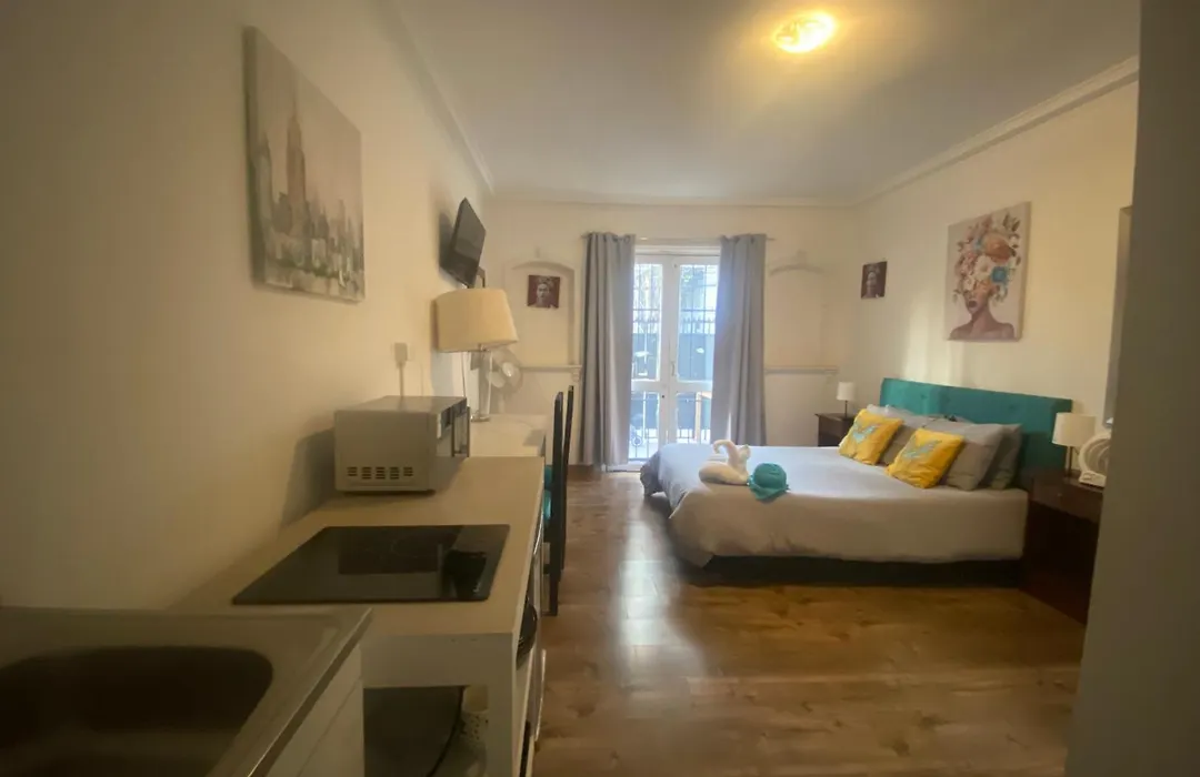 El apartamento Home estudio 1 dispone de una pequeña cocina y una zona de comedor. El establecimiento está situado al alcance de la estación de metro Alcántara. La propiedad se abre a una terraza.